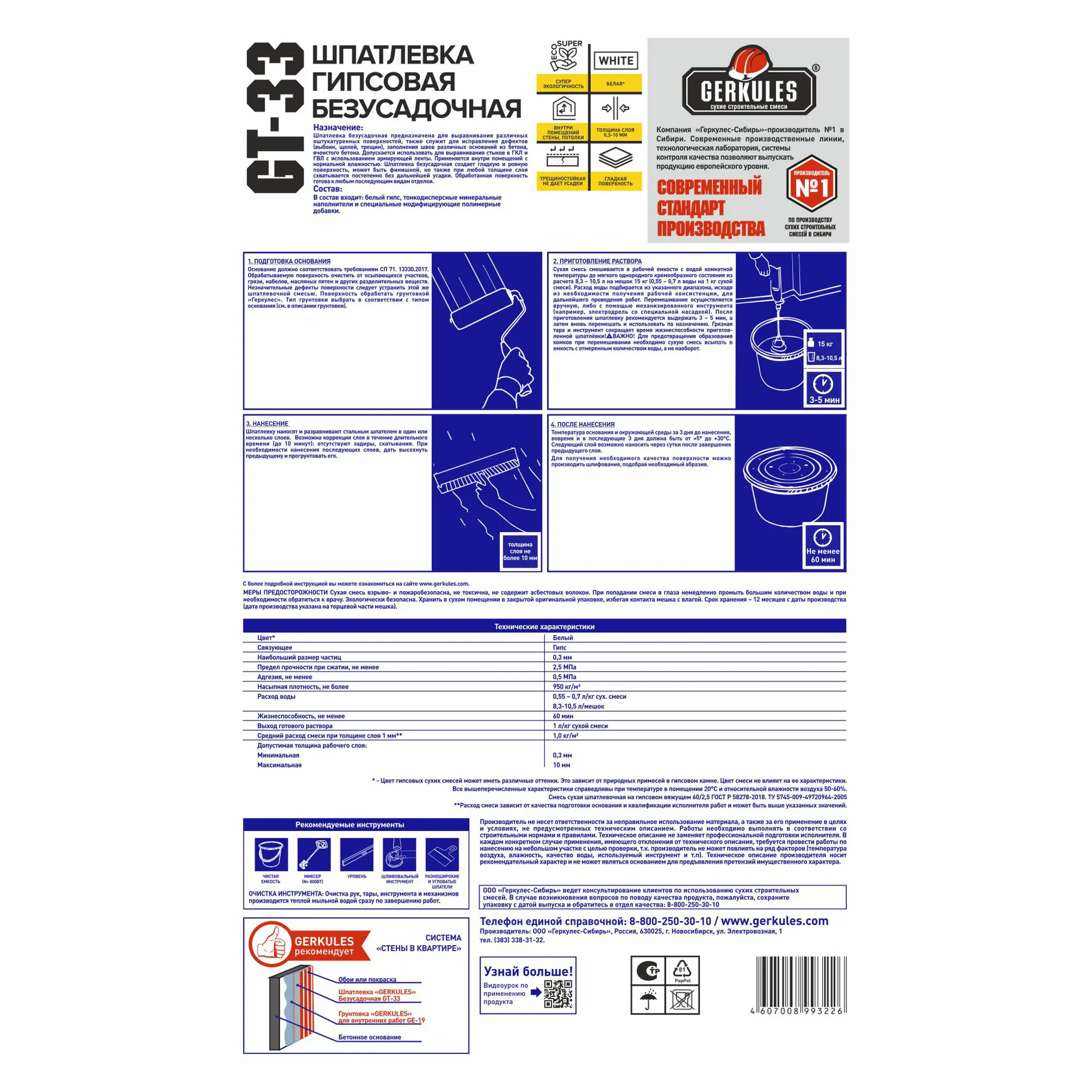 ГЕРКУЛЕС Шпатлёвка безусадочная GT-33 15 кг (64шт)