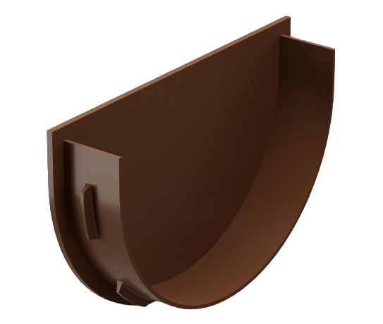 Затвор воронки применяют в случае, если желоб крепится к воронке лишь с одной стороны. До этого этот элемент не использовался, приходилось использовать маленький кусочек желоба и только потом устанавливать на него заглушку желоба.